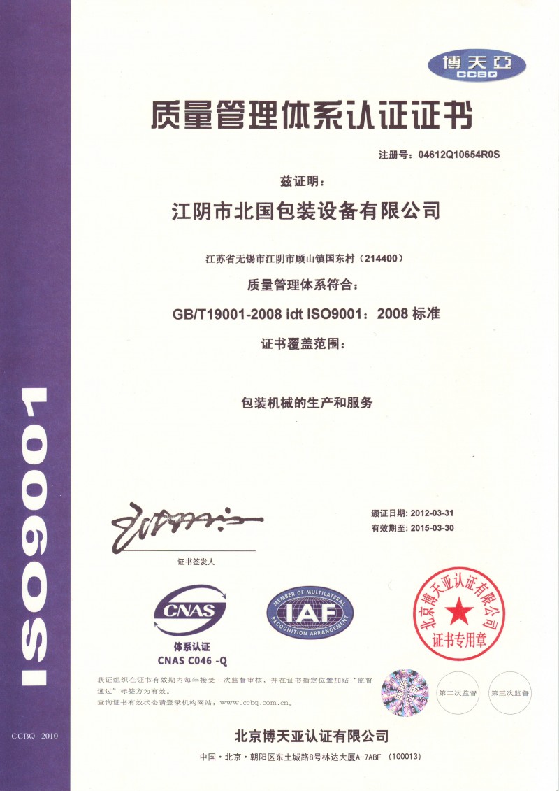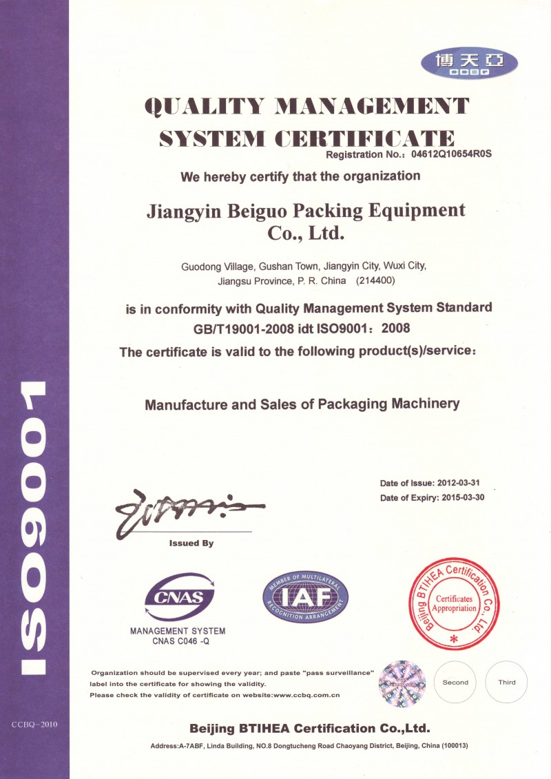 In Beiguo Town of Jiangyin City of Jiangsu Provice, situated in the economically most developed Shanghai Economic Circle,there is a specialized packaging equipment company with 25 years of history--Jiangyin Beiguo Packaging Equipment Co.,Ltd. and the company is revealing a whole-new pose of constant innovating and is coruscating new youth and vitality on its new journey.