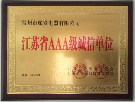 » 江苏省AAA级诚信单位证书