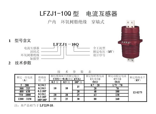 LFZJ1-10Q户内式电流互感器