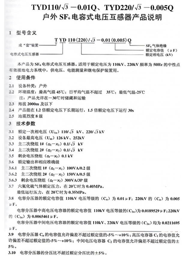TYD110√3-0.01Q、TYD220√3-0.005Q