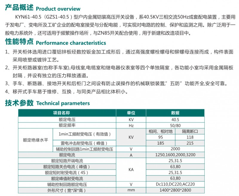 » KYN61-40.5 型户内金属铠装高压开关设备