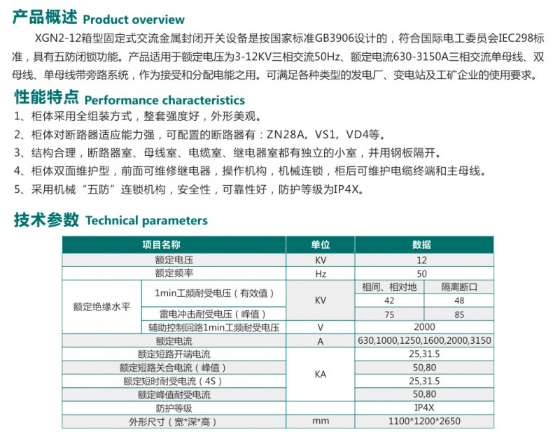 XGN2-12 箱型固定式交流金属封闭开关设备