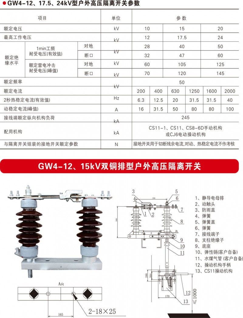 » GW4-12/15KV双铜排型户外高压隔离开关