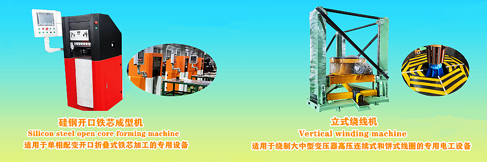 公司产品有:立绕机、折叠式开口铁心成型机、升降平台、铁芯翻转台、高低压箔绕机、非晶合金铁芯剪切线、非晶铁芯退火炉、真空干燥注油炉、铁芯翻转台、线圈整形机、层绝缘折边机、器身装配台等成套28多多专用设备。