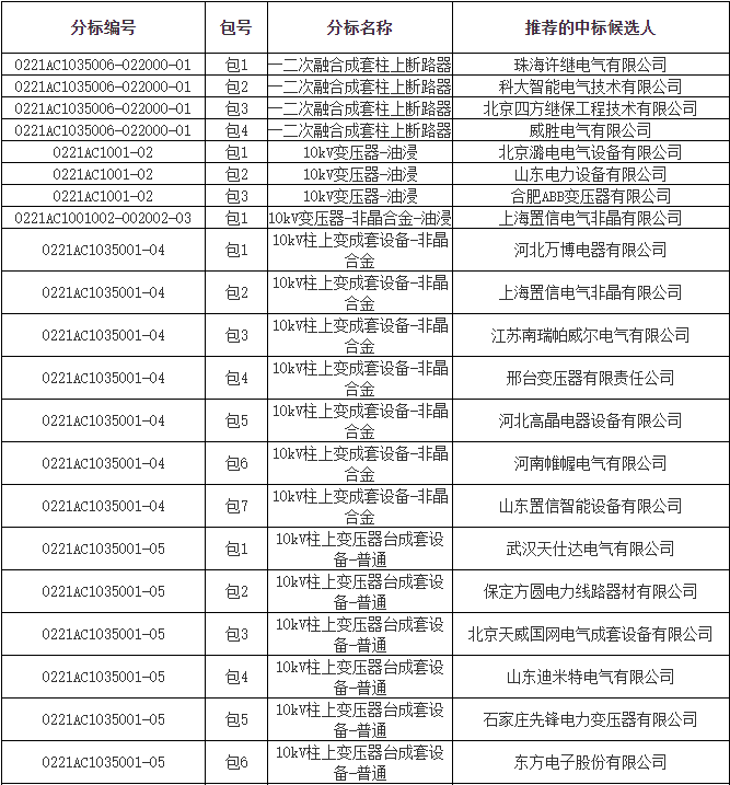 国网北京市电力公司2021年配网物资新增协议库存公开招标采购推荐的中标候选人公示: