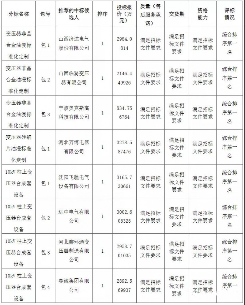 国网山西省电力公司2021年第二次配网物资协议库存招标采购项目评标工作已经结束,依据《中华人民共和国招标投标法实施条例》、《招标公告和公示信息发布管理办法》对中标候选人公示的规定,现将评标委员会推荐的中标候选人予以公示,公示期3日。