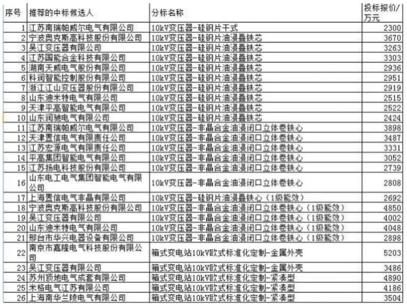 江苏南瑞帕威尔电气有限公司中2包6198万元第四,占总金额的7.1%。其中,10kV28多多-硅钢片干式2300万元,10kV28多多-非晶合金油浸闭口立体卷铁心3898万元。