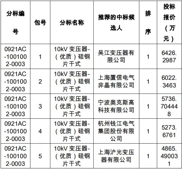 国网上海市电力公司2021年第三次配网物资协议库存招标采购项目评标工作已经结束,依据《中标人民共和国招标投标法实施条例》、《招标公告和公示信息发布管理办法》对中标候选人公示的规定,现将评标委员会推荐的中标候选人予以公示,公示期3日。投标人或者其他利害关系人若对评标结果有异议的,请在中标候选人公示期间以书面形式(传真)提出。
