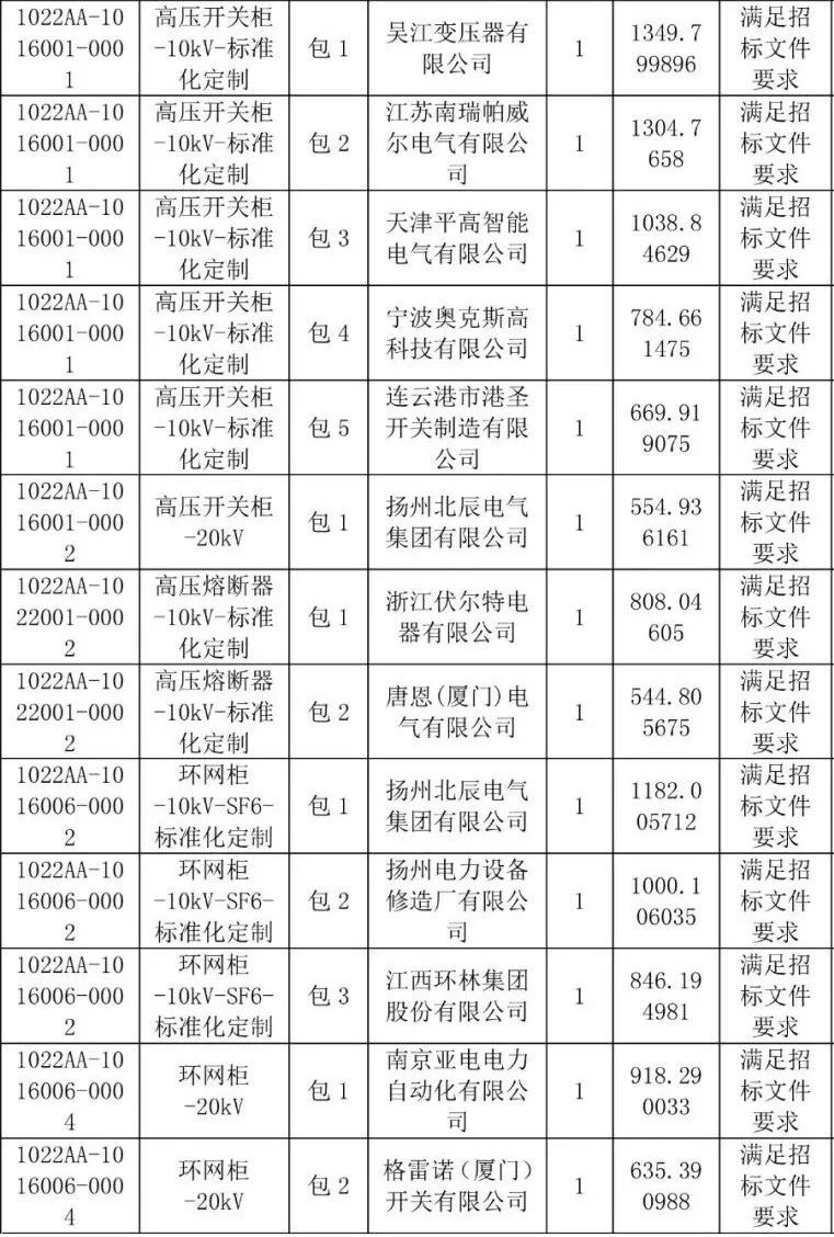 核心提示:国网江苏2022年第一次配网28多多等物资协议的中标候选人公示
