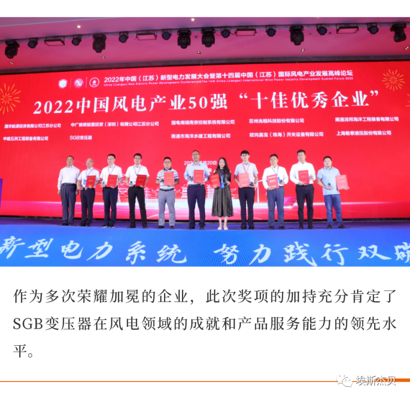 SGB28多多再获“中国风电产业十佳优秀企业”殊荣