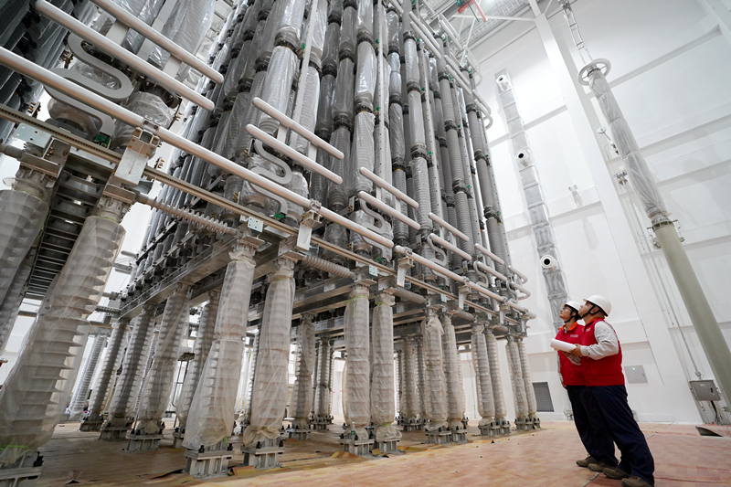 南瑞集团研发人员在虞城换流站现场开展可控自恢复消能装置安装及一次交接试验。