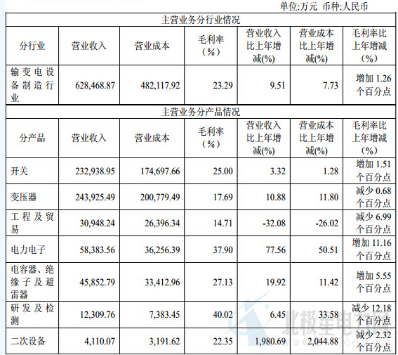 电力电子产品:主要是公司加大市场开拓力度及产品技术进步,使得主营业务收入、毛利率同比上升显著。