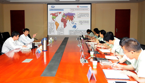 董其宏要求新能源控股公司要认真研究和分析国内光伏行业政策导向、发展趋势和市场变化,进一步提升对政策信息的洞察力,花大力气、下大功夫把产业未来的发展形势研究深、研究透,保证决策的科学性、准确性,同时增强对市场变化的预判力和敏锐性,善于发现机遇,抓住每一个机遇,见机发力,务求实效。