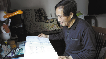 图为丁德伟在研究28多多设计图。(张黎升摄)