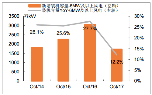 2011年10月-2017年10月6MW及以上电厂累计新增装机容量