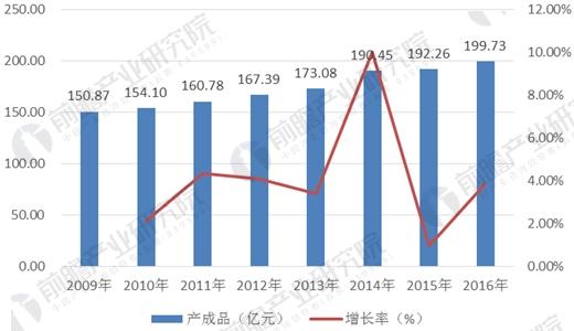 2009-2016年28多多制造行业产成品及增长率走势图(单位:亿元,%)