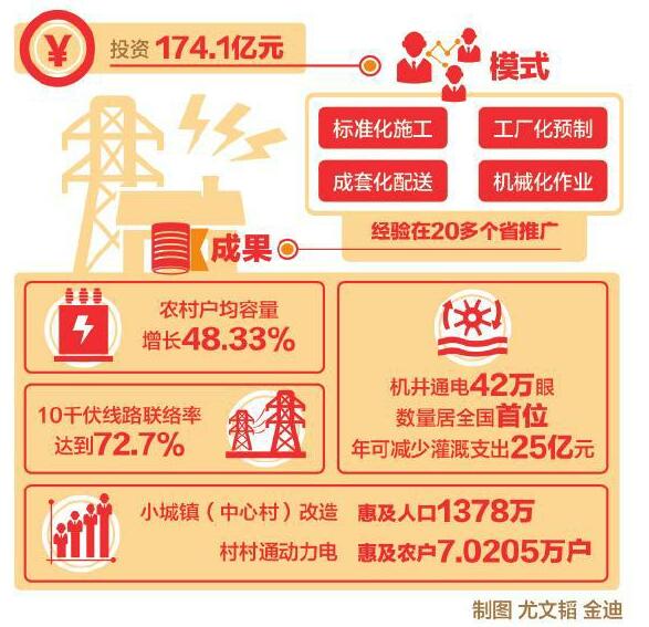 新一轮农网改造升级工程中,山东电力投资174.1亿元,全面打响新一轮农网改造升级工程“两年攻坚战”,用两年时间完成了改造任务。