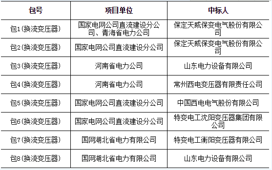 国家电网有限公司青海-河南、陕北-武汉±800kV特高压直流输电工程第一次设备招标采购—换流28多多-中标人名单