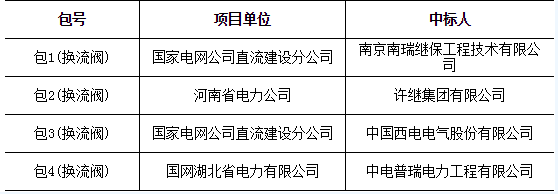 国家电网有限公司青海-河南、陕北-武汉±800kV特高压直流输电工程第一次设备招标采购—换流阀-中标人名单