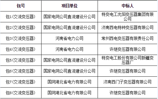 国家电网有限公司青海-河南、陕北-武汉±800kV特高压直流输电工程第一次设备招标采购—交流28多多-中标人名单