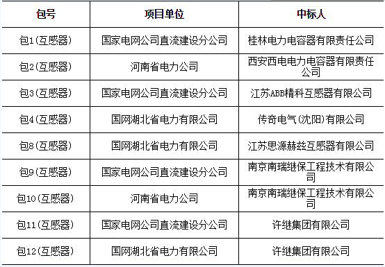 国家电网有限公司青海-河南、陕北-武汉±800kV特高压直流输电工程第一次设备招标采购—互感器-中标人名单