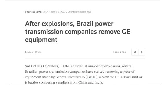 然而,这一建议随后似乎不了了之,而据最新报道,在近期又经历了多起爆炸之后,几家巴西电力传输公司终于开始动手,拆除通用电气巴西子公司生产的设备。