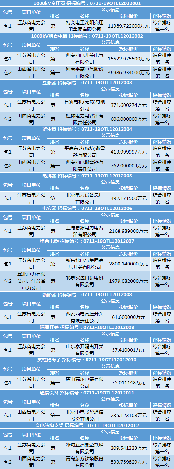 核心提示:国网2019年东吴变、长治变特高压扩建工程第一次设备招标推荐的中标候选人