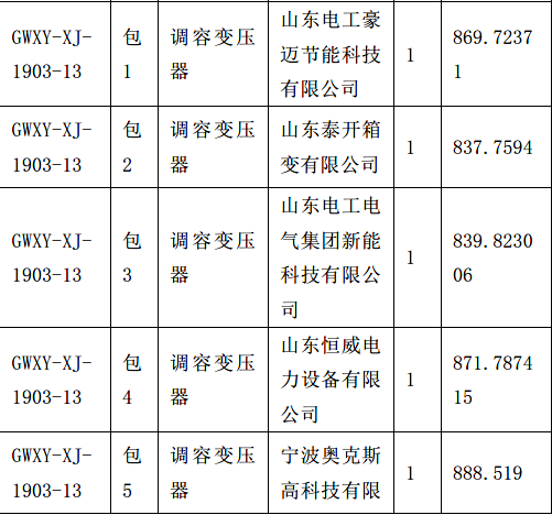 国网新疆2019年第三次配网28多多协议库存中标候选人公示