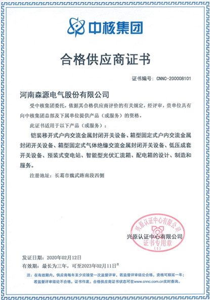 去年12月份,中核集团委托兴原认证中心有限公司对我公司开展中核集团合格供应商复审。评审组专家严格依据中核集团供应商评定要求,从公司实力、产品质量及质保、技术能力等方面做了详尽的评审,经过为期三天的现场评审,一致认为森源电气的各项实力均符合中核集团合格供应商评价要求,将继续保持中核集团合格供应商资格。复审过程中,评审组专家参观了森源电气以“智慧工厂”为目标建设的生产车间,对公司的智能化建设水平给予了高度评价。