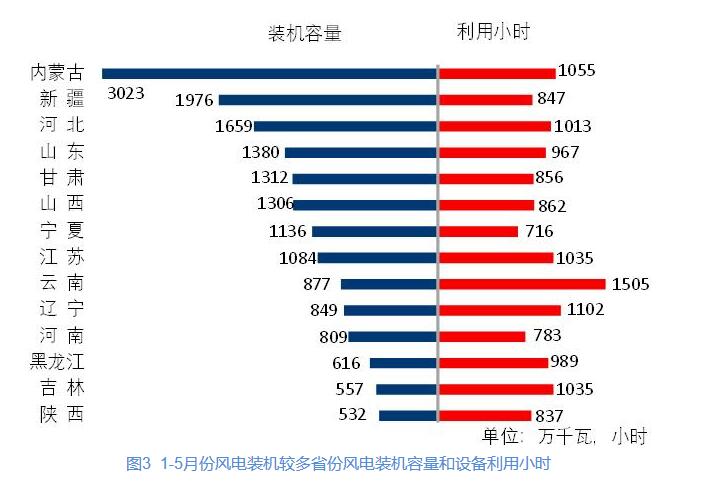 1-5月份,全国6000千瓦及以上风电厂发电量2021亿千瓦时,同比增长9.7%,增速与上年同期基本持平。